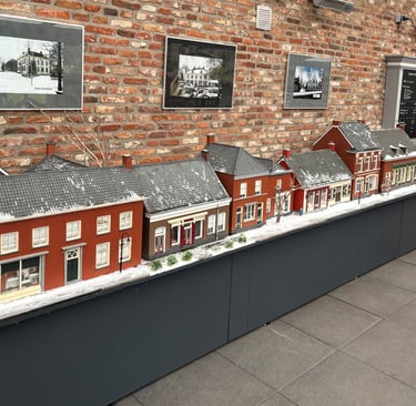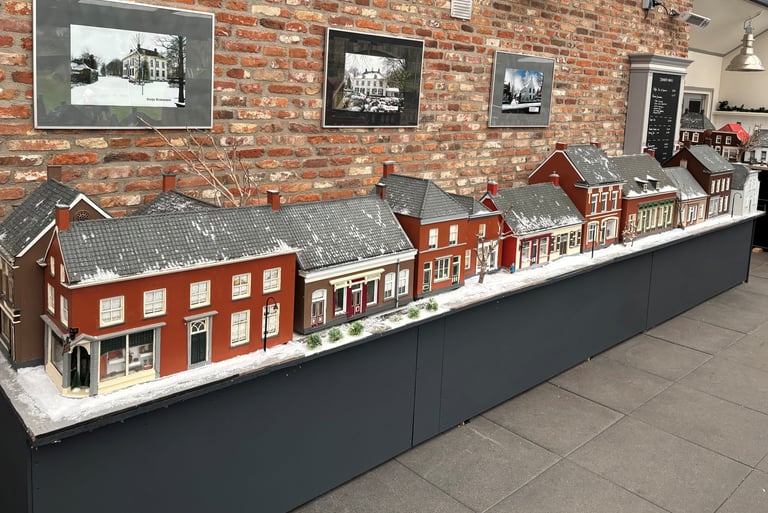 Nu te zien in onze serre .. 42 miniaturen van Oosterhoutse winkelpanden van toen in winterse sferen.